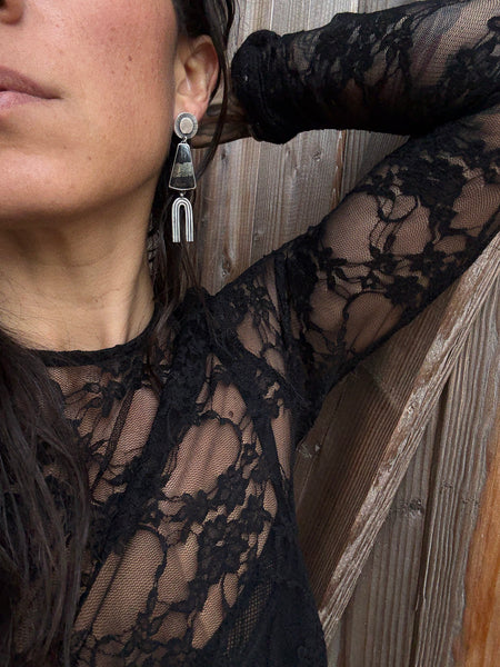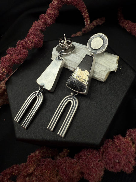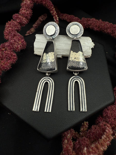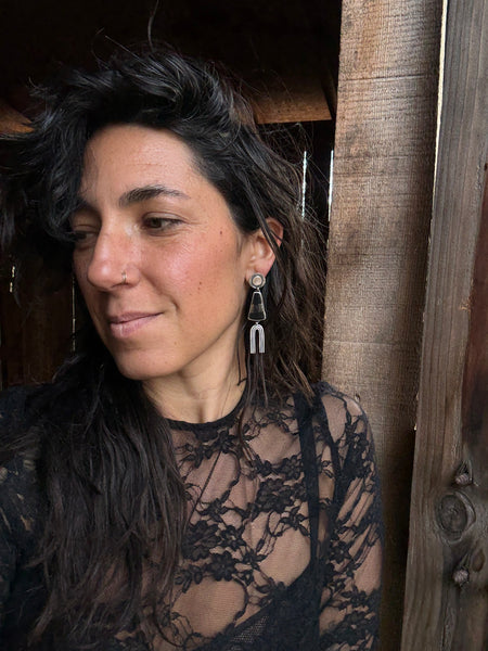 Earrings have two connection points for movement, one at the post and the other connecting the stone to the arch